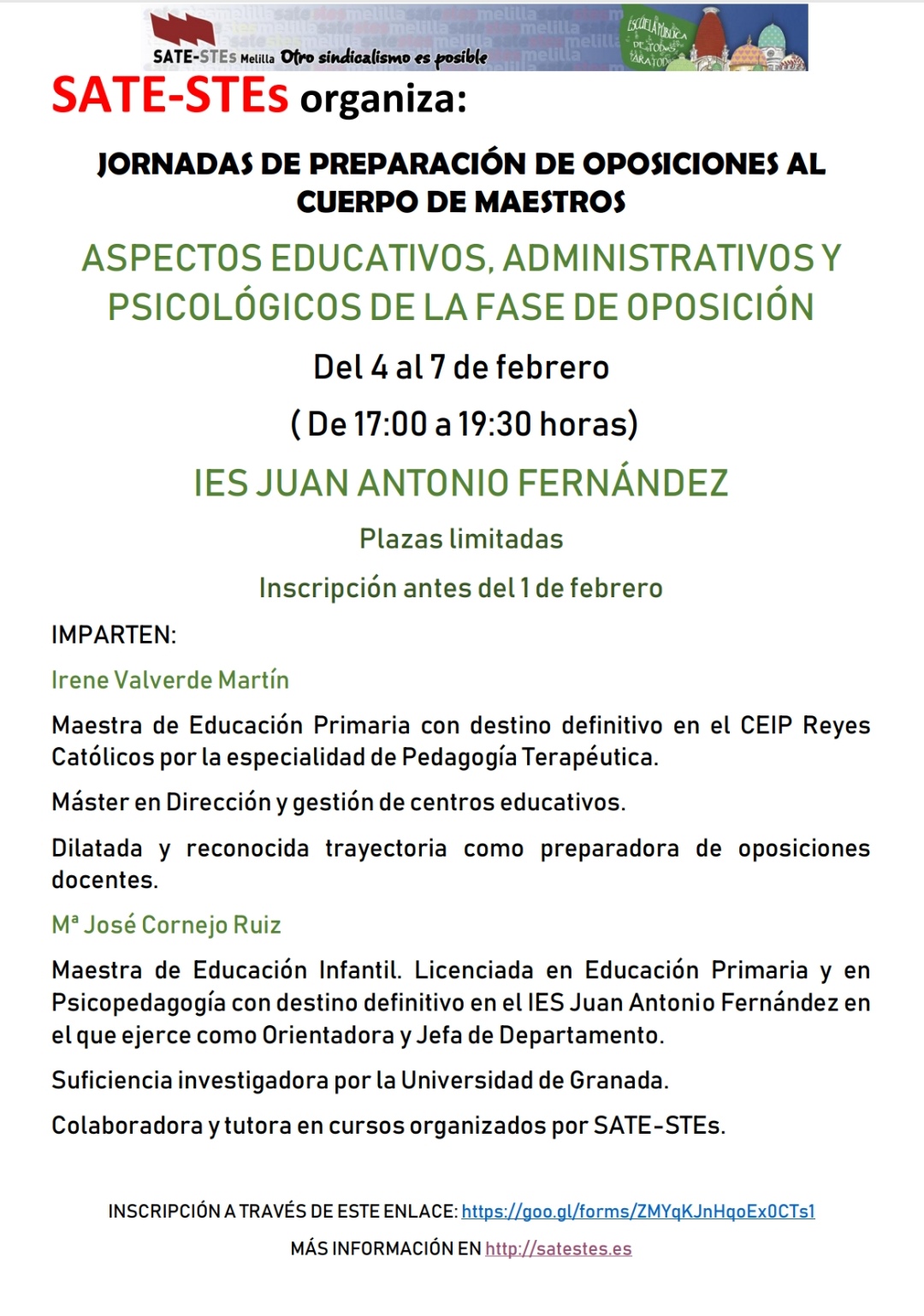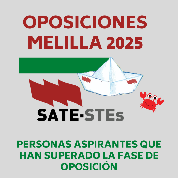 Destacados Novedades II CONVOCATORIA EXTRAORDINARIA CURSO 2025-2026 EN MELILLA. BAREMO DEFINITIVO DE LATÍN, INFORMÁTICA, INSTALACIONES ELECTROTÉCNICAS Y SIST. INFORMÁTICOS Nov 14, 2025 Convocatoria extraordinaria, Interinos, Noticias PROPUESTAS DIDÁCTICAS 25 DE DICIEMBRE DE 2025 Nov 14, 2025 Área de Mujer, Noticias CONCURSO DE TRASLADOS 2025-2026. TODOS LOS CUERPOS DOCENTES Nov 12, 2025 Concurso de Traslados, Funcionarios de carrera, Noticias VUELVEN LAS REVÁLIDAS EN LA REFORMA DE LA PROFESIÓN DOCENTE. Nov 11, 2025 Acción Sindical, Comunicados, Noticias II CONVOCATORIA EXTRAORDINARIA CURSO 2025-2026 EN MELILLA. BAREMO PROVISIONAL DE LATÍN, INFORMÁTICA, INSTALACIONES ELECTROTÉCNICAS Y SIST. INFORMÁTICOS Nov 10, 2025 Convocatoria extraordinaria, Interinos, Noticias II CONVOCATORIA EXTRAORDINARIA CURSO 2025-2026. FECHA Y CARACTERÍSTICAS DE LAS PRUEBAS EN VARIAS ESPECIALIDADES Nov 10, 2025 Convocatoria extraordinaria, Interinos, Noticias Todas las noticias Convocatorias extraordinarias Área de la mujer Boletines "El Clarión" y "Salud laboral" Archivos Elegir el mes noviembre 2025 octubre 2025 septiembre 2025 agosto 2025 julio 2025 junio 2025 mayo 2025 abril 2025 marzo 2025 febrero 2025 enero 2025 diciembre 2024 noviembre 2024 octubre 2024 septiembre 2024 agosto 2024 julio 2024 junio 2024 mayo 2024 abril 2024 marzo 2024 febrero 2024 enero 2024 diciembre 2023 noviembre 2023 octubre 2023 septiembre 2023 agosto 2023 julio 2023 junio 2023 mayo 2023 abril 2023 marzo 2023 febrero 2023 enero 2023 diciembre 2022 noviembre 2022 octubre 2022 septiembre 2022 agosto 2022 julio 2022 junio 2022 mayo 2022 abril 2022 marzo 2022 febrero 2022 enero 2022 diciembre 2021 noviembre 2021 octubre 2021 septiembre 2021 agosto 2021 julio 2021 junio 2021 mayo 2021 abril 2021 marzo 2021 febrero 2021 enero 2021 diciembre 2020 noviembre 2020 octubre 2020 septiembre 2020 agosto 2020 julio 2020 junio 2020 mayo 2020 abril 2020 marzo 2020 febrero 2020 enero 2020 diciembre 2019 noviembre 2019 octubre 2019 septiembre 2019 agosto 2019 julio 2019 junio 2019 mayo 2019 abril 2019 marzo 2019 febrero 2019 enero 2019 diciembre 2018 noviembre 2018 octubre 2018 septiembre 2018 agosto 2018 julio 2018 junio 2018 mayo 2018 abril 2018 marzo 2018 febrero 2018 enero 2018 diciembre 2017 noviembre 2017 octubre 2017 septiembre 2017 agosto 2017 julio 2017 junio 2017 mayo 2017 abril 2017 marzo 2017 febrero 2017 enero 2017 diciembre 2016 noviembre 2016 octubre 2016 septiembre 2016 agosto 2016 julio 2016 Buscar Seleccionar Categoría Acción Sindical Acción social Adjudicación vacantes Área de Mujer Comunicados Concurso de Traslados Convocatoria extraordinaria Exterior Formación Formación Profesional Funcionarios de carrera Interinos Mesa de Trabajo Ceuta y Melilla Noticias Oposiciones Reuniones con la DP Salud Laboral Uncategorized CONTRA ESTA REFORMA DE LA PROFESIÓN DOCENTE Guía del funcionario/a en prácticas Charla Estatal sobre la FP Dual Concurso de méritos extraordinario. Proceso de estabilización. Oposiciones y sistemas de acceso (Higinio Rodríguez) Manual Solicitud/Renovación Certificado Empleado Público Manual SATE-STEs de registro electrónico de documentos Manual SATE-STEs consulta tus nóminas UNIDADES DIDÁCTICAS