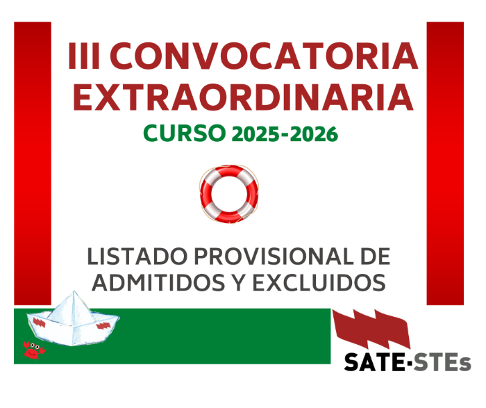 III CONVOCATORIA EXTRAORDINARIA MELILLA. CURSO 2025-2026. LISTADO PROVISIONAL DE ADMITIDOS Y EXCLUIDOS Feb 16, 2026 Convocatoria extraordinaria, Interinos, Noticias