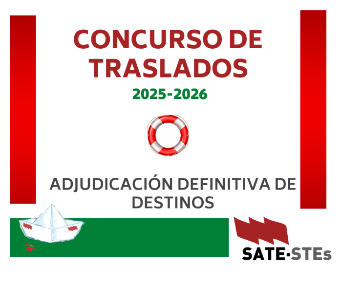Destacados Novedades CONCURSO DE TRASLADOS CURSO 2025-2026 MELILLA. ADJUDICACIÓN DEFINITIVA DE DESTINOS Mar 23, 2026 Concurso de Traslados, Funcionarios de carrera, Noticias SATE-STEs POR EL INCREMENTO DE LA OFERTA UNIVERSITARIA Y DE FP EN MELILLA Mar 20, 2026 Acción Sindical, Comunicados, Formación, Formación Profesional, Noticias II CONVOCATORIA EXTRAORDINARIA CURSO 2025-26 MELILLA. BAREMO DEFINITIVO DE GUITARRA Mar 18, 2026 Convocatoria extraordinaria, Interinos, Noticias III CONVOCATORIA EXTRAORDINARIA CURSO 2025-2026 MELILLA. BAREMO PROVISIONAL EN VARIAS ESPECIALIDADES Mar 17, 2026 Convocatoria extraordinaria, Interinos, Noticias POR LA RECUPERACIÓN DEL SALARIO DOCENTE PERDIDO Mar 17, 2026 Acción Sindical, Comunicados, Noticias I CONVOCATORIA EXTRAORDINARIA CURSO 2025-2026. BAREMO PROVISIONAL DE LA ESPECIALIDAD MATERIALES Y TECNOLOGIA: DISEÑO Mar 16, 2026 Convocatoria extraordinaria, Interinos, Noticias Todas las noticias Convocatorias extraordinarias Área de la mujer Boletines "El Clarión" y "Salud laboral" Archivos Elegir el mes marzo 2026 febrero 2026 enero 2026 diciembre 2025 noviembre 2025 octubre 2025 septiembre 2025 agosto 2025 julio 2025 junio 2025 mayo 2025 abril 2025 marzo 2025 febrero 2025 enero 2025 diciembre 2024 noviembre 2024 octubre 2024 septiembre 2024 agosto 2024 julio 2024 junio 2024 mayo 2024 abril 2024 marzo 2024 febrero 2024 enero 2024 diciembre 2023 noviembre 2023 octubre 2023 septiembre 2023 agosto 2023 julio 2023 junio 2023 mayo 2023 abril 2023 marzo 2023 febrero 2023 enero 2023 diciembre 2022 noviembre 2022 octubre 2022 septiembre 2022 agosto 2022 julio 2022 junio 2022 mayo 2022 abril 2022 marzo 2022 febrero 2022 enero 2022 diciembre 2021 noviembre 2021 octubre 2021 septiembre 2021 agosto 2021 julio 2021 junio 2021 mayo 2021 abril 2021 marzo 2021 febrero 2021 enero 2021 diciembre 2020 noviembre 2020 octubre 2020 septiembre 2020 agosto 2020 julio 2020 junio 2020 mayo 2020 abril 2020 marzo 2020 febrero 2020 enero 2020 diciembre 2019 noviembre 2019 octubre 2019 septiembre 2019 agosto 2019 julio 2019 junio 2019 mayo 2019 abril 2019 marzo 2019 febrero 2019 enero 2019 diciembre 2018 noviembre 2018 octubre 2018 septiembre 2018 agosto 2018 julio 2018 junio 2018 mayo 2018 abril 2018 marzo 2018 febrero 2018 enero 2018 diciembre 2017 noviembre 2017 octubre 2017 septiembre 2017 agosto 2017 julio 2017 junio 2017 mayo 2017 abril 2017 marzo 2017 febrero 2017 enero 2017 diciembre 2016 noviembre 2016 octubre 2016 septiembre 2016 agosto 2016 julio 2016 Buscar Seleccionar Categoría Acción Sindical Acción social Adjudicación vacantes Área de Mujer Comunicados Concurso de Traslados Convocatoria extraordinaria Efemérides Exterior Formación Formación Profesional Funcionarios de carrera Interinos Mesa de Trabajo Ceuta y Melilla Noticias Oposiciones Reuniones con la DP Salud Laboral Uncategorized CONTRA ESTA REFORMA DE LA PROFESIÓN DOCENTE Guía del funcionario/a en prácticas Charla Estatal sobre la FP Dual Concurso de méritos extraordinario. Proceso de estabilización. Oposiciones y sistemas de acceso (Higinio Rodríguez) Manual Solicitud/Renovación Certificado Empleado Público Manual SATE-STEs de registro electrónico de documentos Manual SATE-STEs consulta tus nóminas UNIDADES DIDÁCTICAS