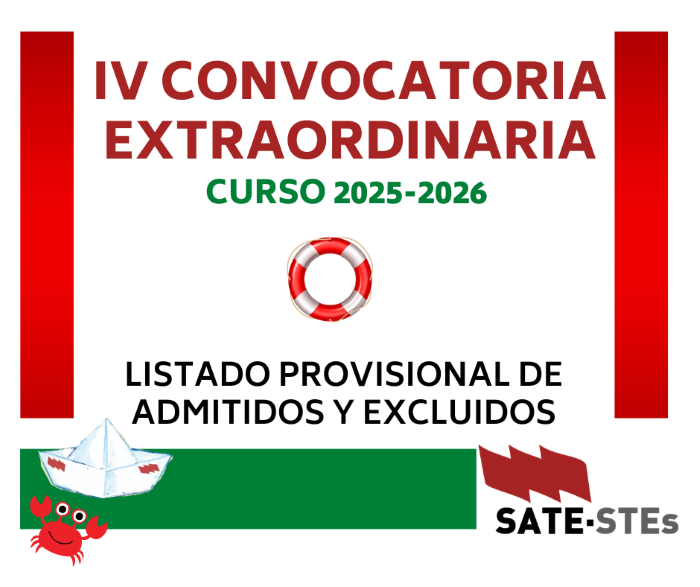 IV CONVOCATORIA EXTRAORDINARIA MELILLA. CURSO 2025-2026. LISTADO PROVISIONAL DE ADMITIDOS Y EXCLUIDOS Abr 13, 2026 Convocatoria extraordinaria, Interinos, Noticias
