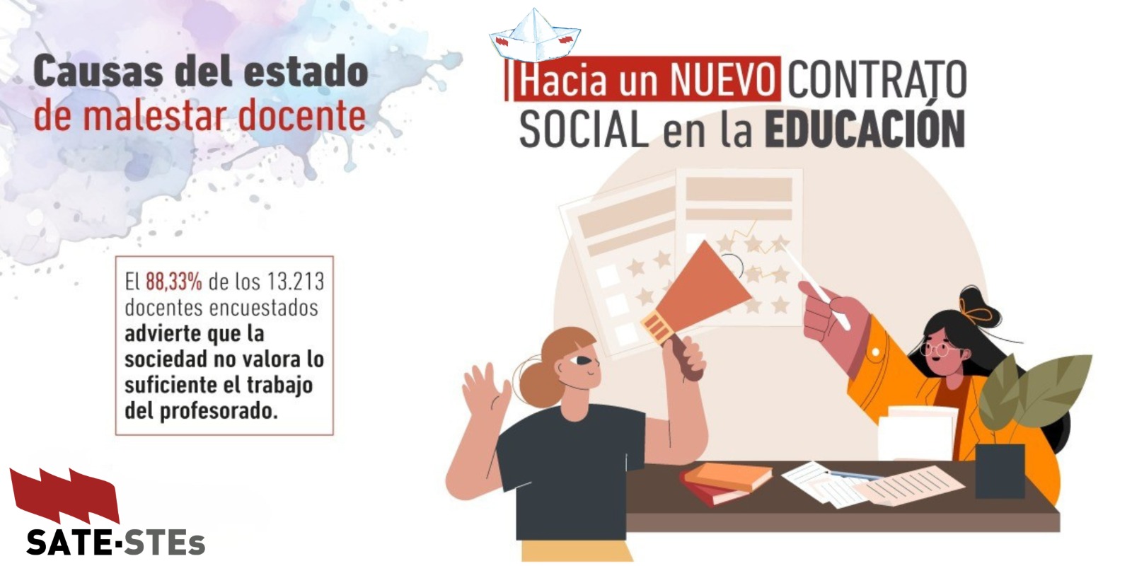 Un macro-estudio realizado por STE’s Intersindical entre más de 13.000 docentes de todo el territorio, refleja las CAUSAS DEL MALESTAR DOCENTE en la Educación Pública. Este estudio nos ofrece datos muy llamativos por Comunidades autónomas, por provincias, por niveles educativos y en las diferentes enseñanzas.