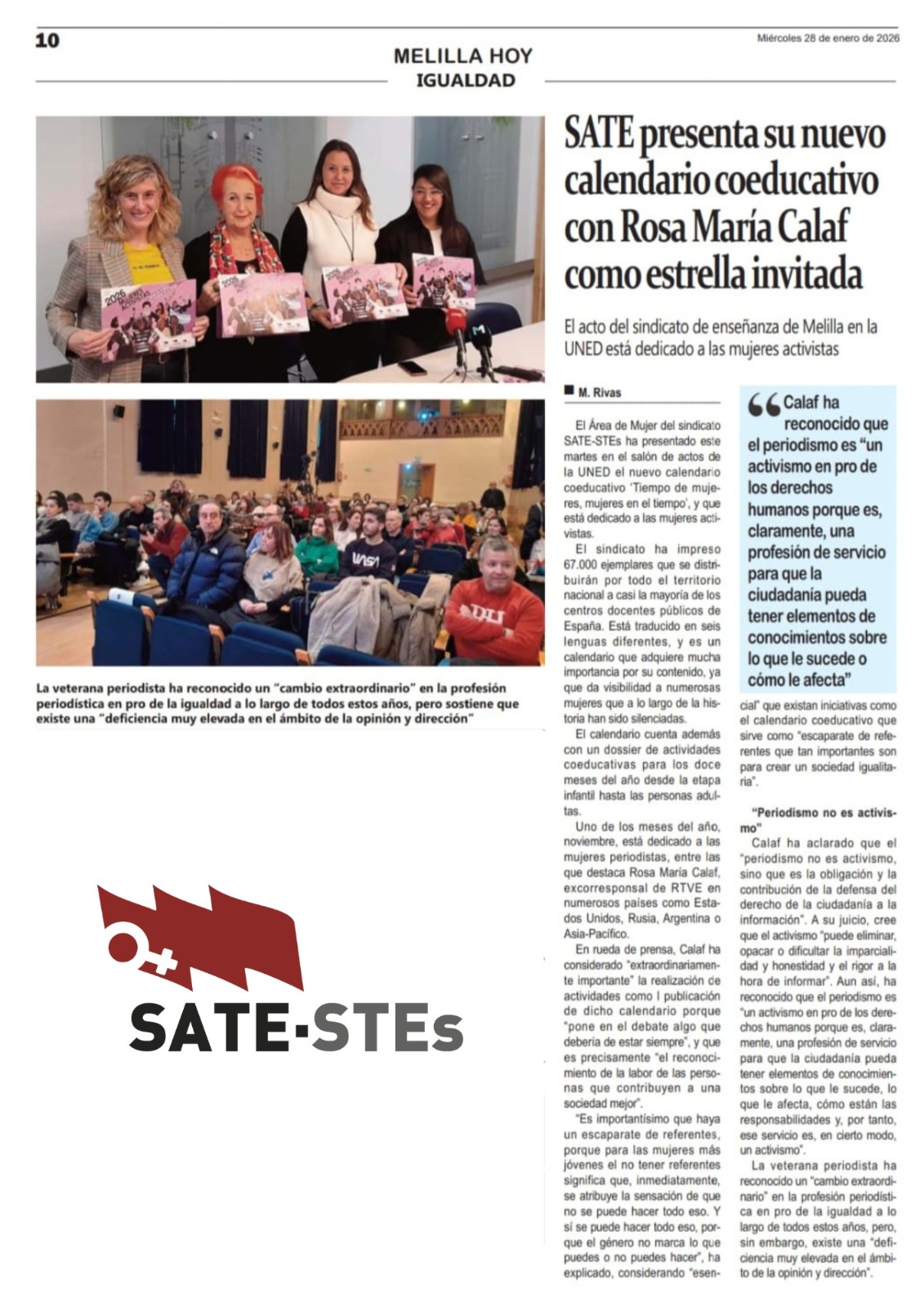 🎨🎨🎨 Rosa Delia Morales,  Coordinadora del Área de Mujer de SATE-STEs Melilla.