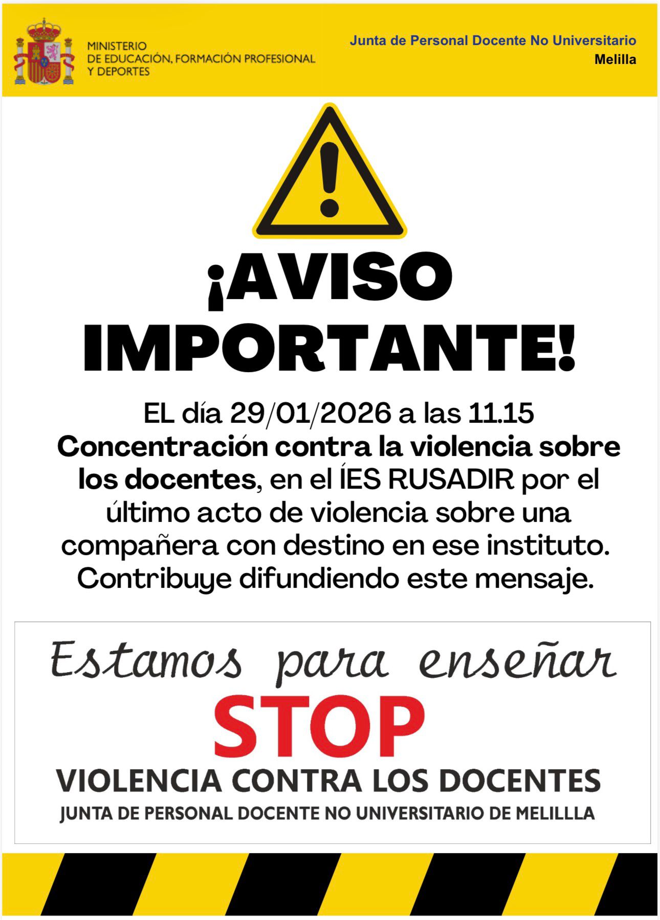 Así pues, según la Junta de Personal Docente de Melilla, este manifiesto está dirigido a familias, alumnado, administraciones, sindicatos y ciudadanos, con el objetivo de incitar a la acción colectiva y la consecución de unas “escuelas seguras, respetuosas y capaces de ofrecer un futuro mejor”.