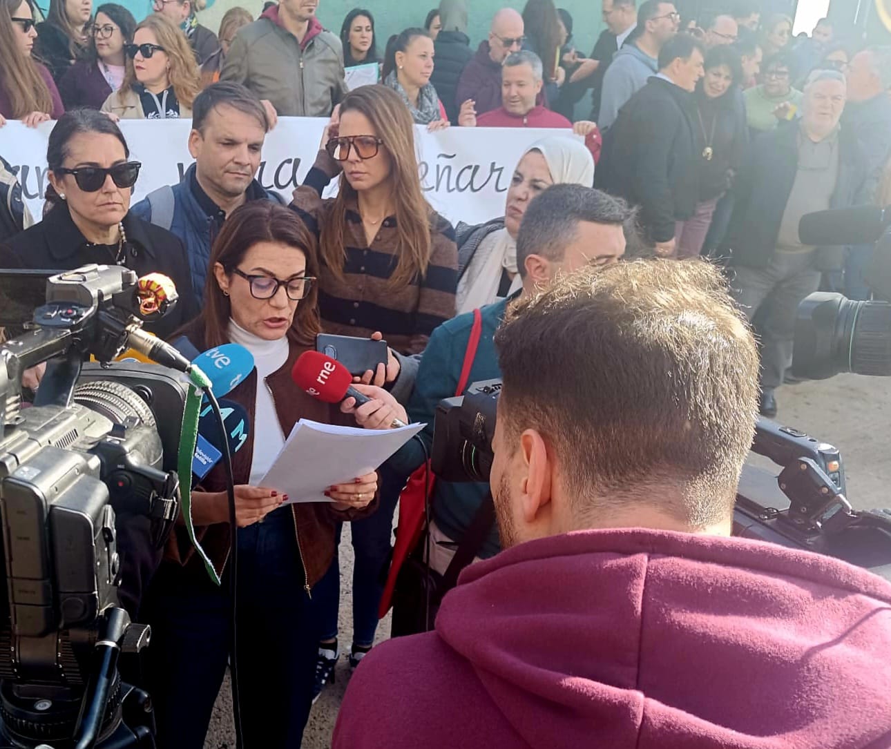 Mediante la lectura de un manifiesto, representantes de UGT, FEUSO, SATE-STEs, ANPE, CC.OO. y CSIF han pedido «protección efectiva e inmediata, reconocimiento real de la autoridad docente, formación y medios adecuados y un compromiso estatal firme».