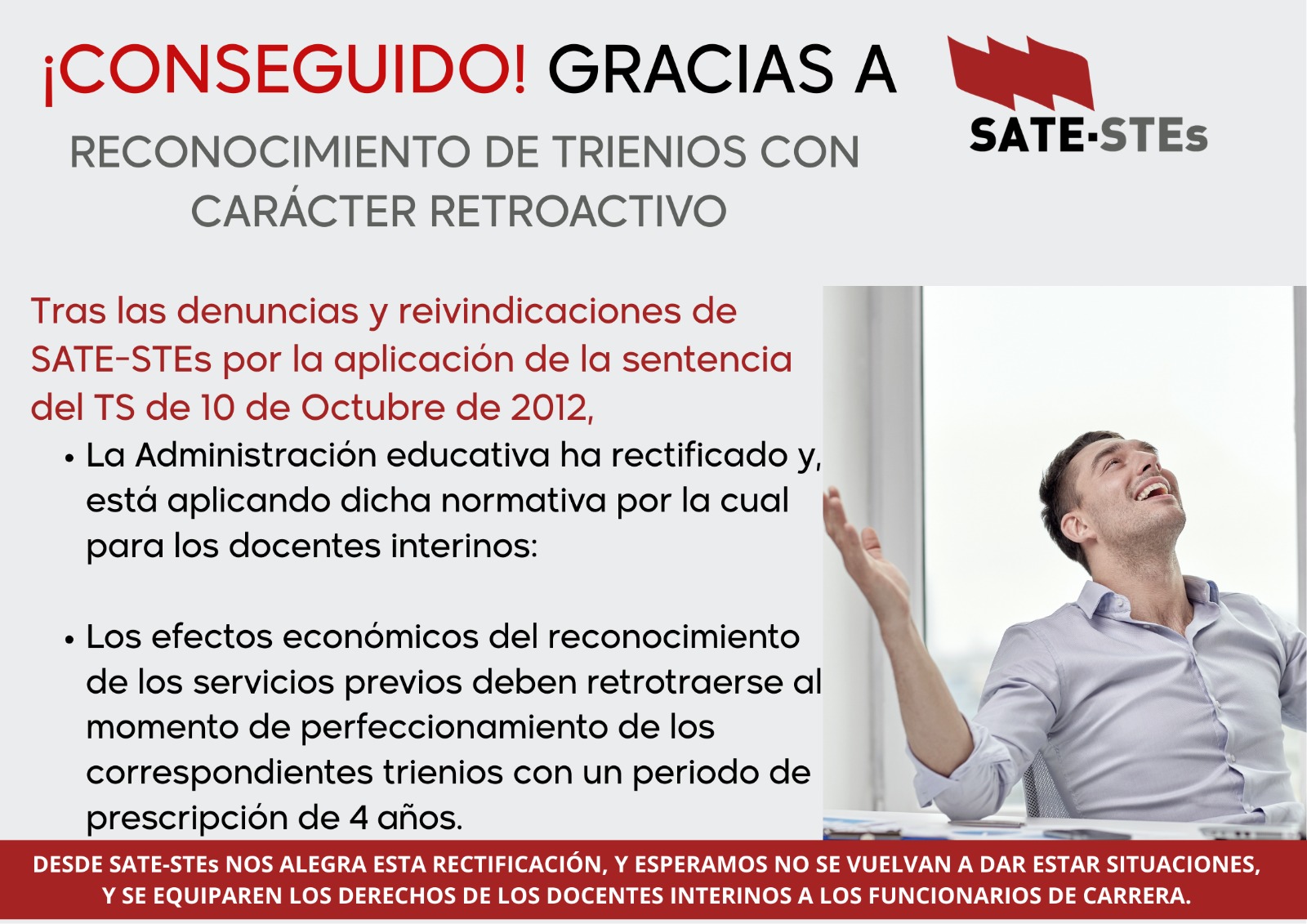 DESDE SATE-STEs NOS ALEGRA ESTA RECTIFICACIÓN, Y ESPERAMOS NO SE VUELVAN A DAR ESTAR SITUACIONES, Y SE EQUIPAREN LOS DERECHOS DE LOS DOCENTES INTERINOS A LOS FUNCIONARIOS DE CARRERA.