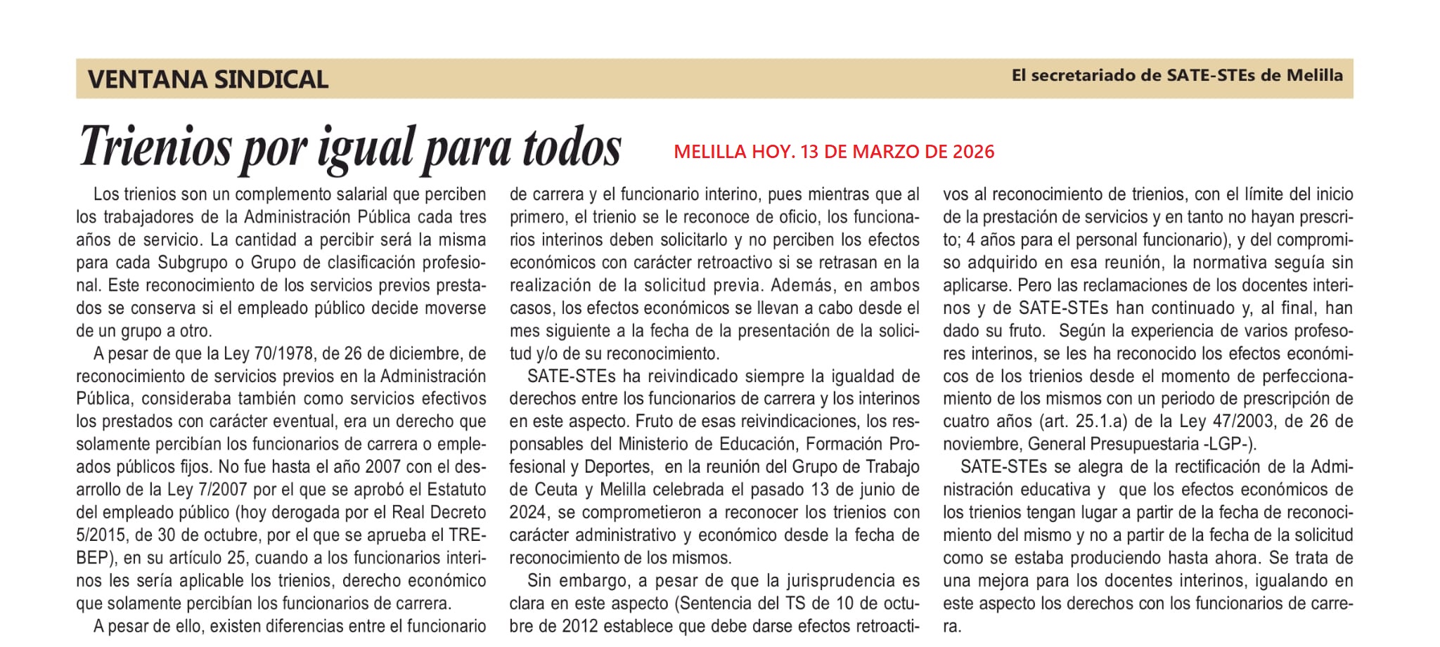 DESDE SATE-STEs NOS ALEGRA ESTA RECTIFICACIÓN, Y ESPERAMOS NO SE VUELVAN A DAR ESTAR SITUACIONES, Y SE EQUIPAREN LOS DERECHOS DE LOS DOCENTES INTERINOS A LOS FUNCIONARIOS DE CARRERA.